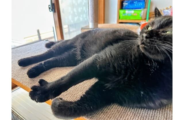 野良猫クロちゃん ふみふみの代わりにグーパーする野良猫クロちゃん
