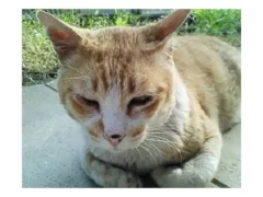 はじめ私は、茶色短毛猫を追い払おうとしたが、この猫はやせ細り、右目がただれ、左目も目やにだらけで、この野良に冷たくするのは、何だか気が引けた。
