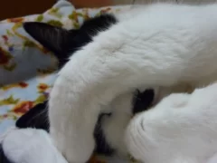 クーちゃんのいつもの白い手足は、真っ黒だった。