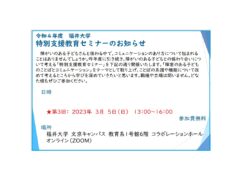 2022年12月3日(土)13時~ 福井大学副学長の松木健一先生による特別支援教育セミナーの第2回がZoom オンラインであります。