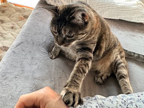 家猫歴6年の花ちゃんが、この1ヶ月ほど、「ちょうだい」と手(前足)で伝えてきます。
