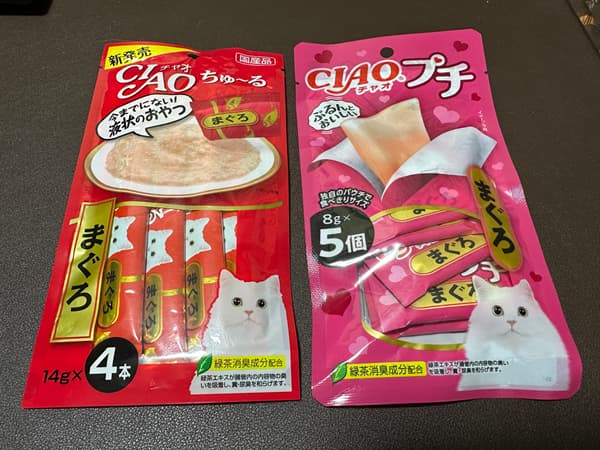 花ちゃんのご飯は、決まっていて、カリカリ➡チャオチュール➡チャオプチです。