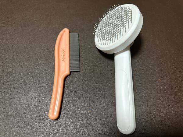 毛すきぐしや、スリッカーブラシを見せると、「毛をすいてもらえる」と思って飛んできます。