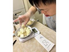 病院小児科の療育で、28歳のダウン症のまさや君と、レジ操作の学習を始めました。