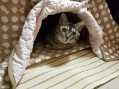 花ちゃん自身も、これまで飼った猫たちと同様に、熱心に自分で毛繕いをする。