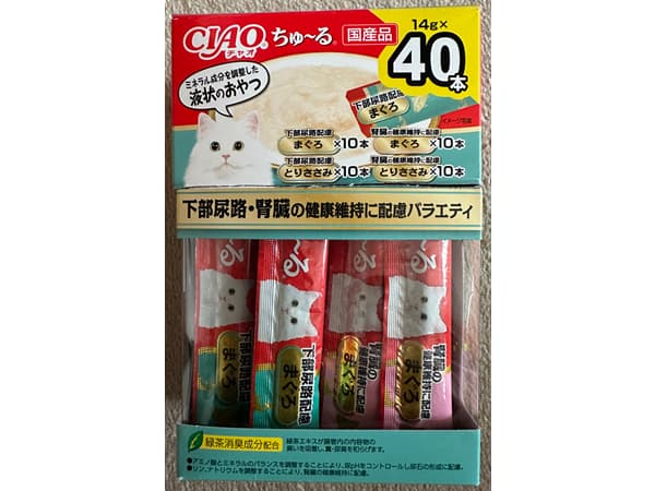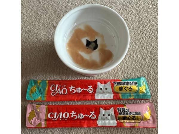 ちゅーるも腎臓用にしたら緑茶の香りが嫌いで食べない