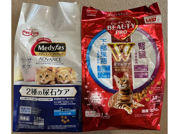 下部尿路・腎臓に配慮した、以下の2種類のカリカリは、残念ながら花ちゃんは好みませんでした。