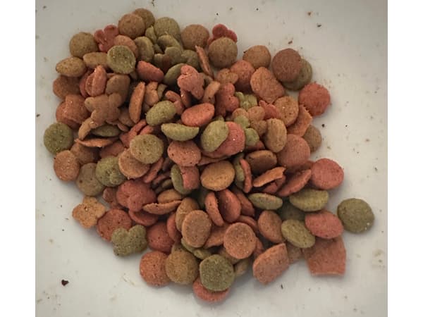 硬い乾燥カニカマや小魚は、花ちゃんが残すので、私が取り去って、カリカリだけあげています。