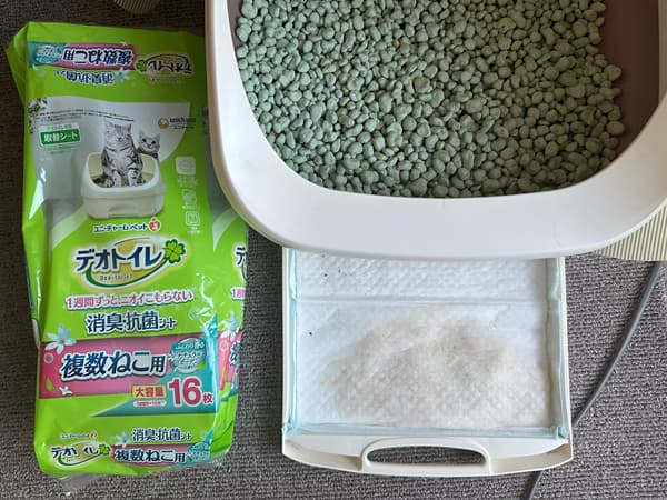 ユニチャーム複数猫用ペットシーツ1枚で、1週間ゆうゆうだったのですが、今では溢れるほどです。