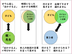 お家でも、お母さんに「許可を求める」というスキルを、大人の提案で、何度もチャレンジできるといいですね。
