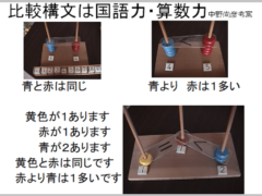 大小や長短から数概念を形成する方法 の教材No.25で紹介したように、大小や長短の順序付けが、数概念形成学習のスタートとなる。