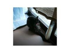 きっすいの野良猫クロちゃんは、毛づくろいしない、決して触らせない、オモチャで遊ばない猫だと思っていましたが、根気よくオモチャを扱って見せれば、遊ぶようになる猫だったのです。