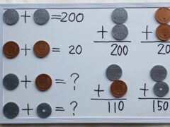 算数では、何かにつけて、お金(実感イメージ)を引き合いに出して説明すると、子どもの興味を引き、わかりやすさも増す。