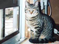 ペットの出入り口は、外へのガラス戸につけるのではなく、室内のドアにつけて、室内の猫の移動を保障するだけでいいと、今では分かる。