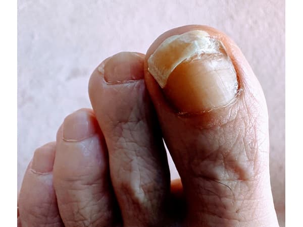 足の爪が伸びないだけなら、そうなのですが、爪は指を保護しているらしく、歩くと爪先が靴にあたり、爪が伸びない親指が痛みます。
