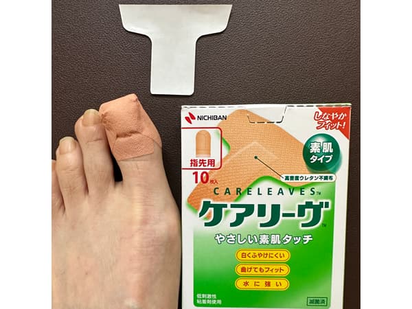 とりあえず絆創膏と厚い靴下を履いて、親指が靴に当たるのを保護していました。