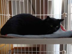 とても静かなクロちゃん、明日、動物病院に行けるね。