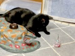 痩せたクロちゃんに栄養価の高い子猫のエサをやってみた