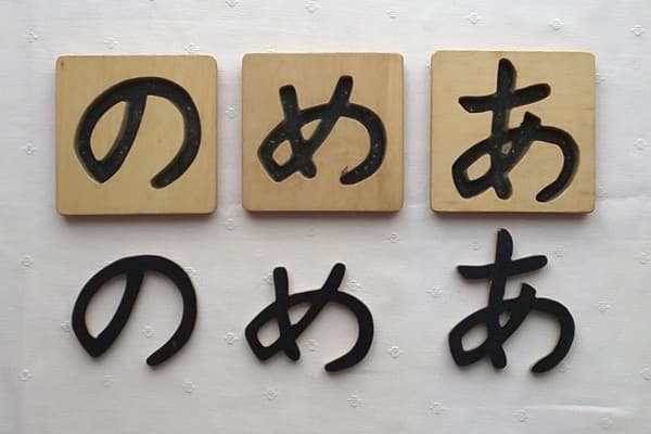 次に、見本の「あ」のカードを隣に置いて、見本に合わせて作ってもらいます。