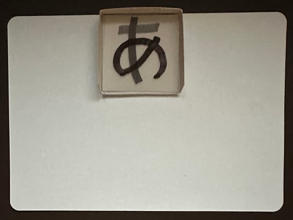 4cm 角~5cm 角のクリアファイルに、太マジックで、「あ」の線分「ー」「|」「の」を書きます。