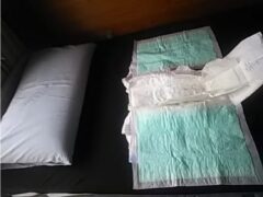 オムツセットは、昼間は、ユニ・チャーム製ライフリー尿2回分「のびーるフィット薄型軽快テープ止め」オムツに、ライフリー「一晩中お肌あんしん尿取りパッド」サラサラドライシートの尿4回分パッドを挟んだ。