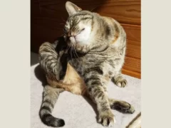 排泄の後、花ちゃんがジュータンでお尻を拭く行動が、単なる花ちゃんのきれい好きならそうしていていいのだが、肛門膿炎ならば治療してやりたい。