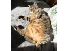 取り戻しのチュールとご飯を食べ、安心の排便をし、毛づくろいをして、日向ぼっこをしています。