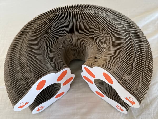 前回の花ちゃんの投稿でも書きましたが、クロちゃんが脱走したあと、何か楽しいおもちゃはないものかと探していたところ、Instagram で、変形する猫の爪とぎを発見し、買っちゃいました。