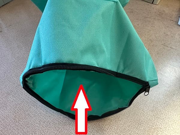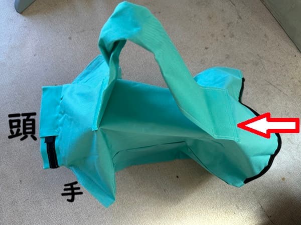 クロちゃんを、「ネコまもり」の後ろのチャックから入れることは、難しいです。