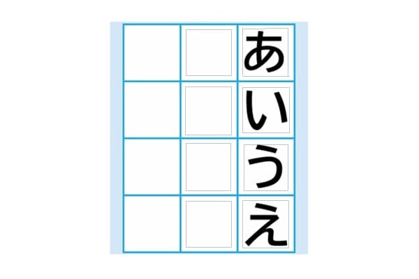 印刷のように、いつも決まった形のひらがなを、見えているマス目の四角いっぱいに書きます。