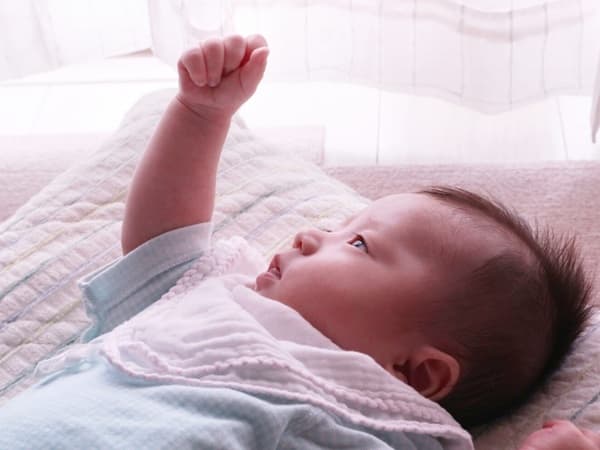 生後2〜4ヶ月頃の赤ちゃんが、自分の手をじっと見ているハンドリガードという「注視」があります。