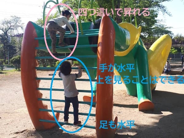 垂直四つ這いのような、手足の協調運動が難しいんですね。