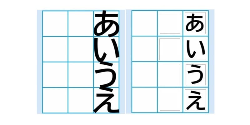 印刷のように、いつも決まった形のひらがなを、見えているマス目の四角いっぱいに書きます。