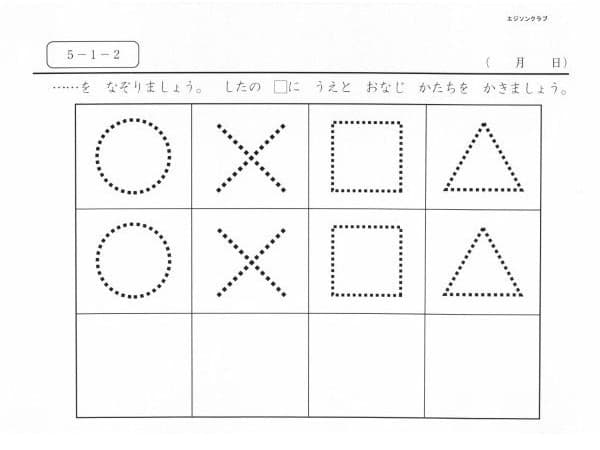 ⑤鉛筆を持って、色々な線分|ー/○▢◇△~+×*☆を書ける