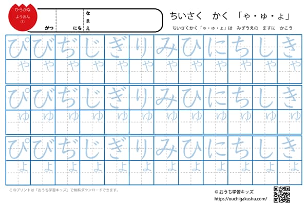 特に拗音は、表で「きゃきゅきょ しゃしゅしょ」と、表の位置と音をリズムよく、一致させておくことが大切です。