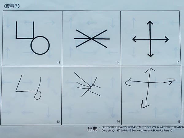 相談場面で、生育歴や困り事を聞き、学校のノート類を拝見し、「くだものはりんごがすきです。」程度の短い作文を書いてもらうと、発達性協調運動症が疑われる子どもさんが多いです。