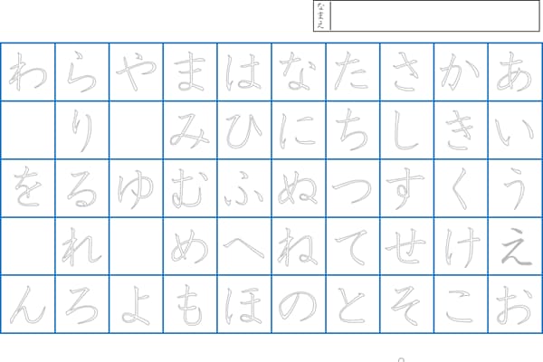 書くことの抵抗が少なくなったら、ひらがな50音表のなぞり書きを練習しましょう。