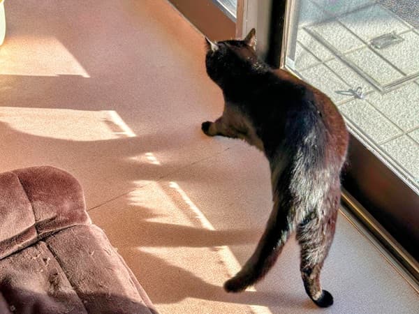トイレを6か所にしても、1~7月の発情期には、玄関の脱走防止フェンスに、「外に出たい、野生に帰る」と、毎晩尿スプレーをしているクロちゃんでした。