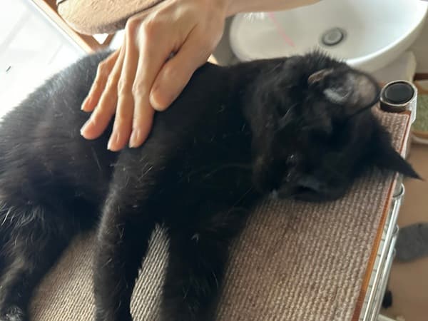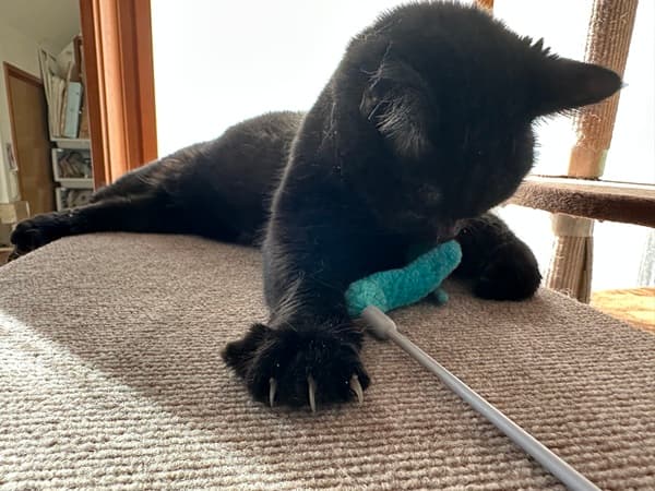 4年目、またたび粉末付きのもふもふ棒で、クロちゃんに触れるようになり、