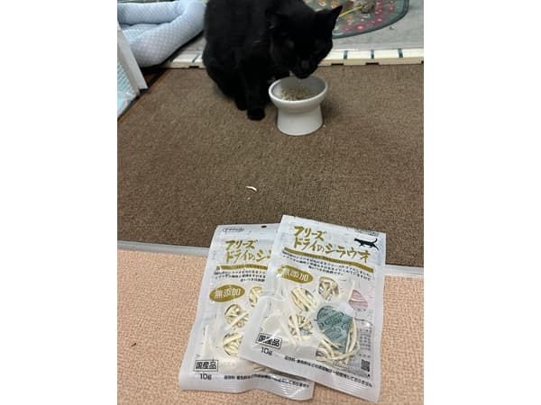 クロちゃんは、ママクックのフリーズドライのシラウオが大好きになり、このおやつでクロちゃんとの距離が縮まりました。