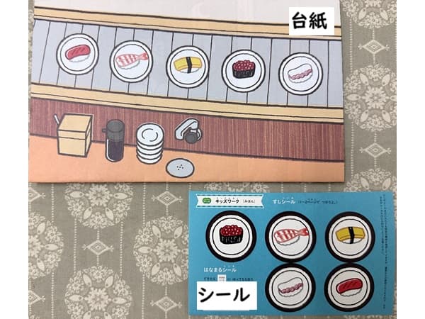 3番目は、まさや君は、家族で回転寿司に行くのが好きなので、お寿司のシールを用意しました。
